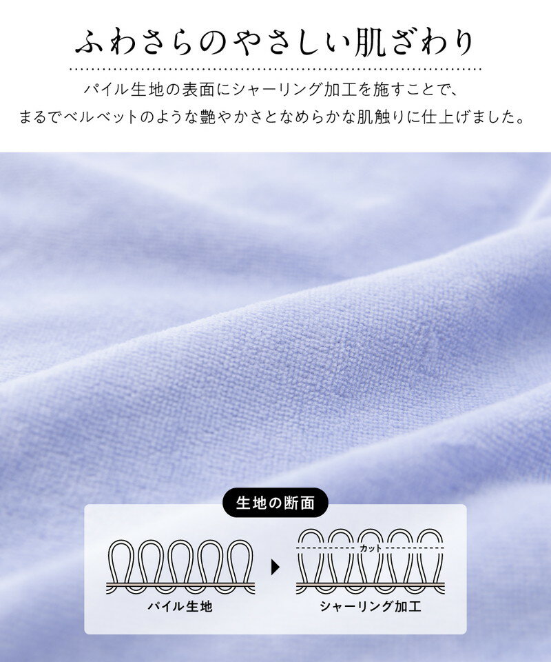 ■特長綿100%のタオル地にシャーリング加工を施し、ふんわりさらさらの肌触りが心地いい敷きパッド。